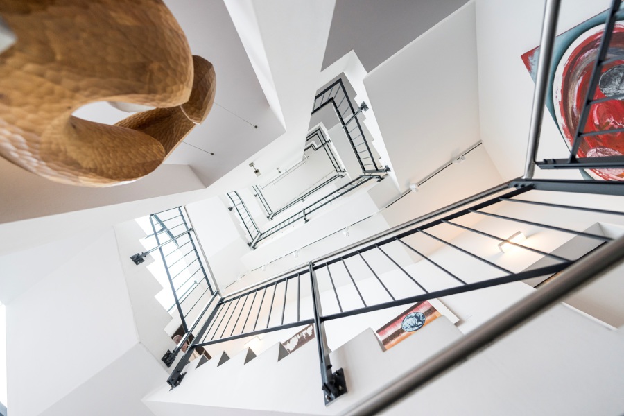 Dadurch, dass diese Galerie ein Stiegenhaus ist, (oder das Stiegenhaus eine Galerie), ergeben sich immer neue und ungewohnte Blickwinkel und Sichtweisen. Wenn Sie dann noch die architektonischen Details und die vorhandene Technik mit einbeziehen, dann wird es ganz interessant. Lassen Sie sich überraschen ...